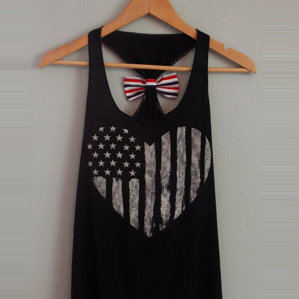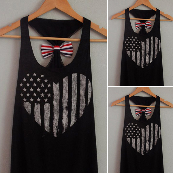 with U-neck and heart printed pattern,sweet and chic. Backside decorated with a bowknot design makes this piece