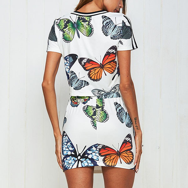 The butterfly printed pattern design makes it look so vivid and vibrant. Including a short sleeve round neck t-shirt