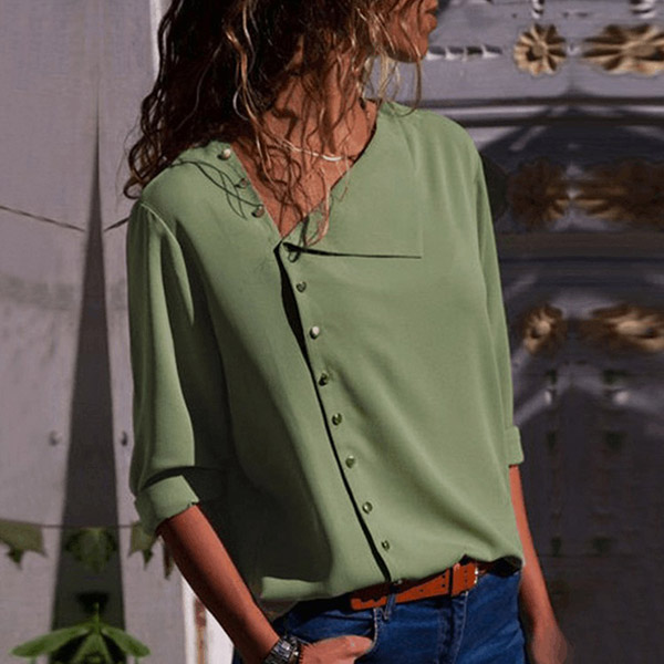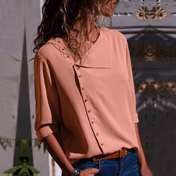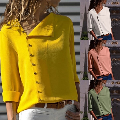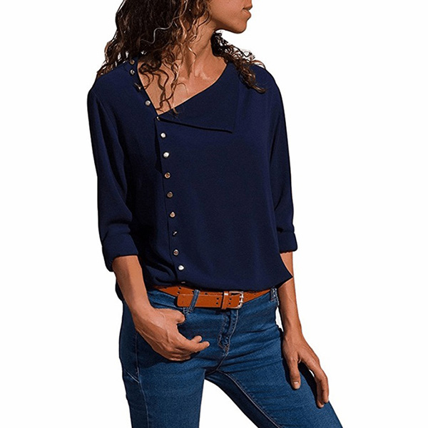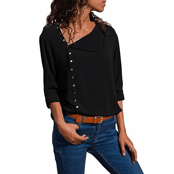 fabric featuring an irregular oblique collar, come with the button front design, a long sleeve,