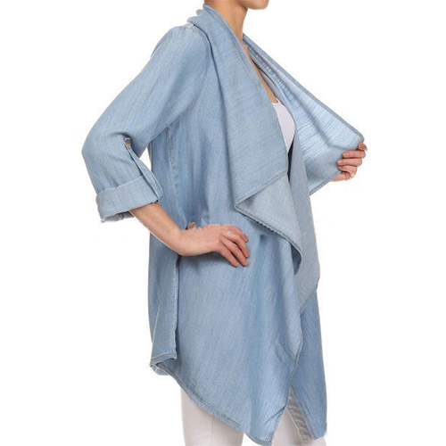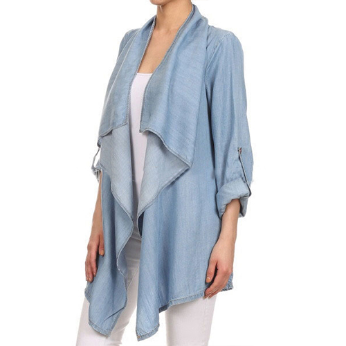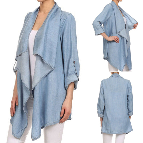 Do you have a cardigan? Do you have a denim cardigan? Please look at this one. In the coming cold days,