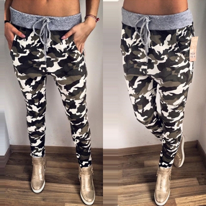 Features camouflage printed pattern,with a drawstring waist,this pants can give you a stylish look.