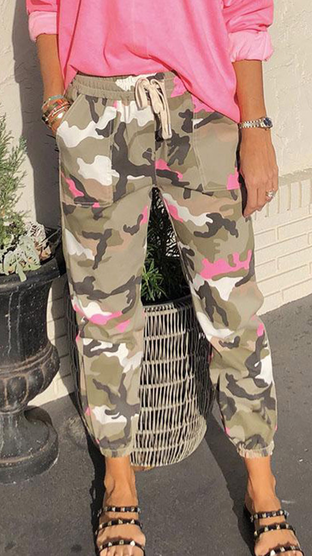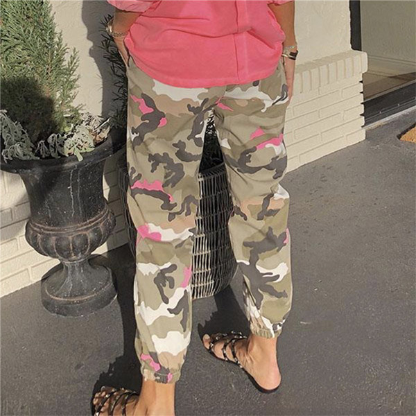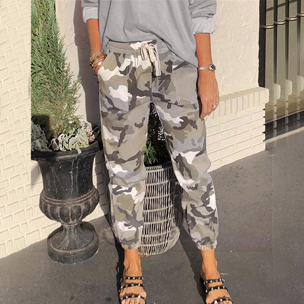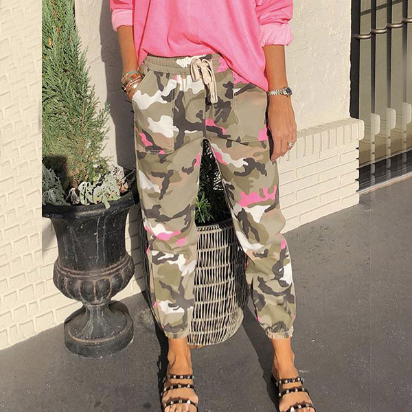 Fashion Camouflage Printed Drawstring Waist Casual Pants