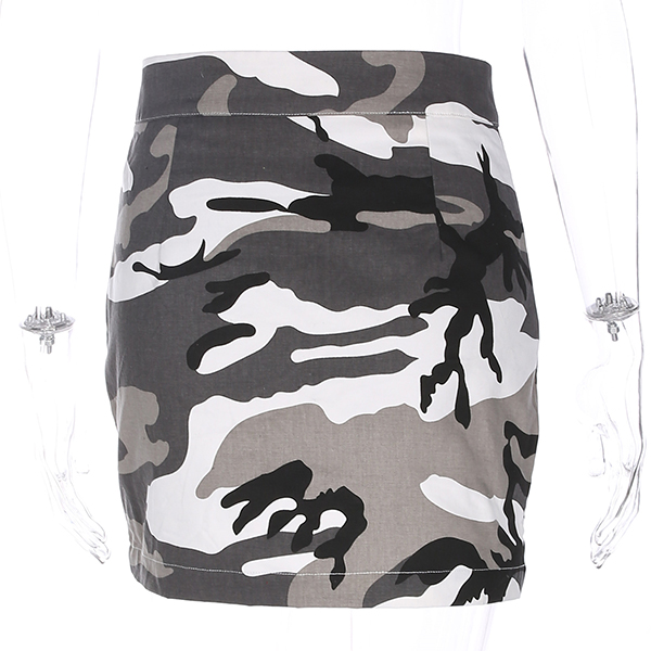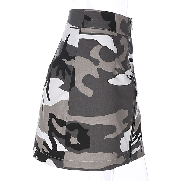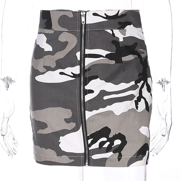 Fashion Camouflage Printed High Waist Front-zipper Skirt