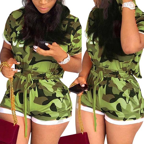 Camouflage print design makes it look eye-catching. Including a short sleeve hooded t-shirt and a shorts,
