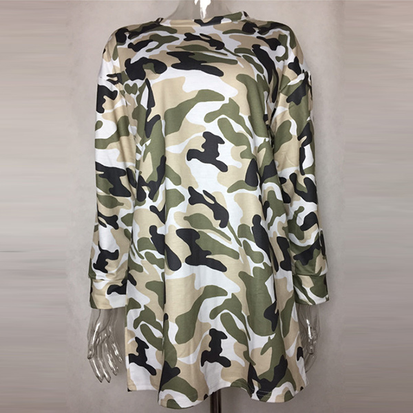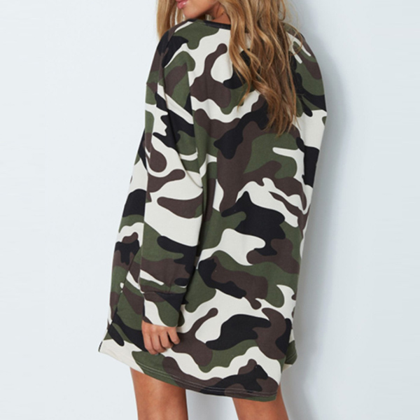 Make your daily style have an updated with this sweatshirt dress! Camouflage printed design can help you win more eyes,