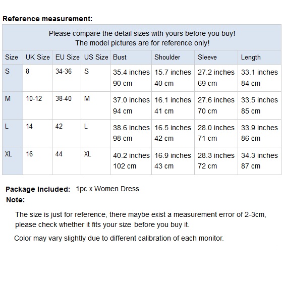 XL : Bust : 102cm(40.16"); Shoulder : 43cm(16.93"); Sleeve : 72cm(28.35"); Length : 87cm(34.25");