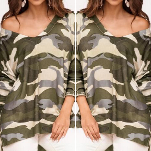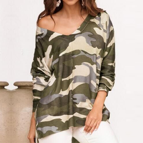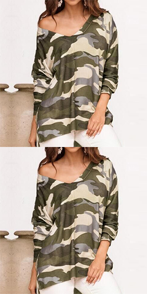 Boasting chic camouflage printed pattern,with long sleeve and v-neck design,
