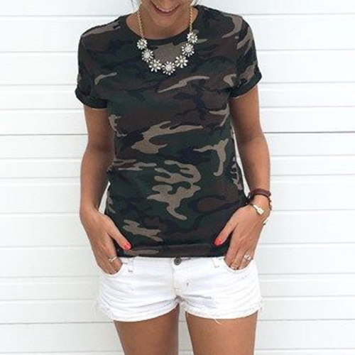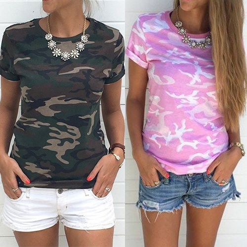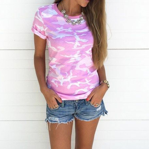 This simple and cozy t-shirt is your summer essential. Camouflage printed style,with short sleeve,round neck and crafted
