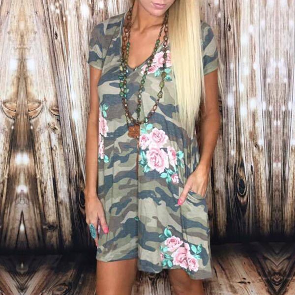 On your lazy days,you can count on this dress for a cozy yet stylish style. The camouflage printed design