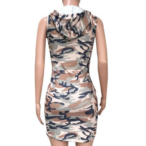 This dress is designed with camouflage element,chic and stylish. Finished with sleeveless,hooded and a fit