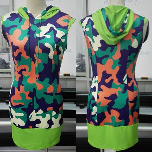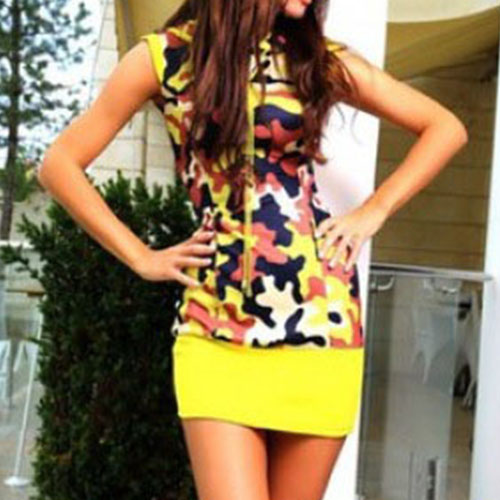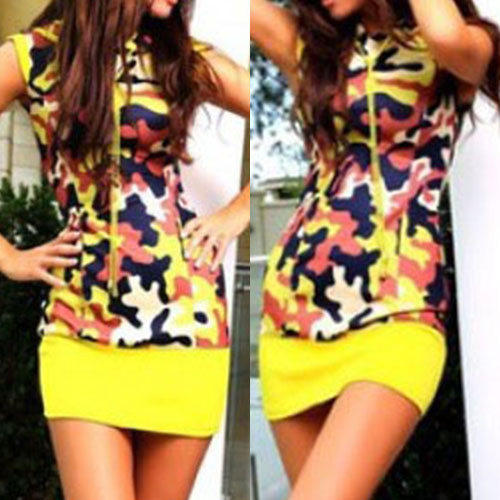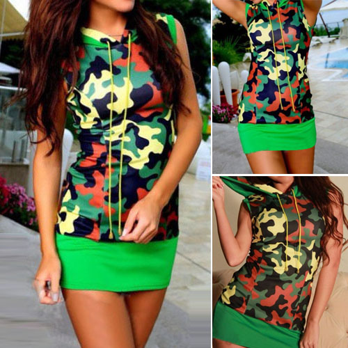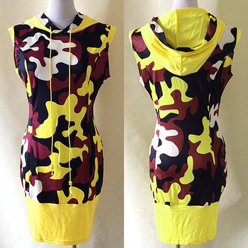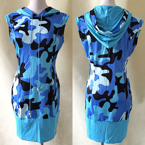 This dress features camouflage printed pattern,with sleeveless,hooded and slim fit design,which