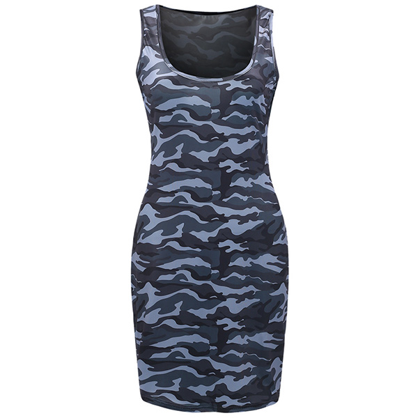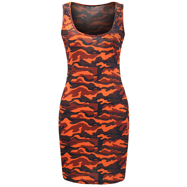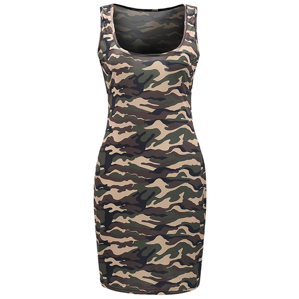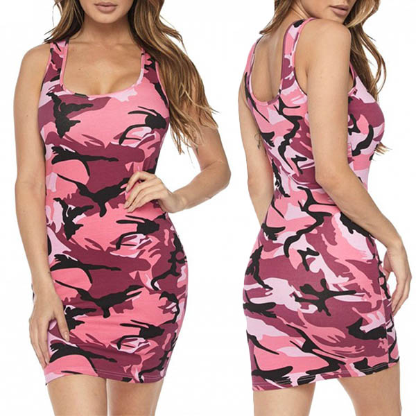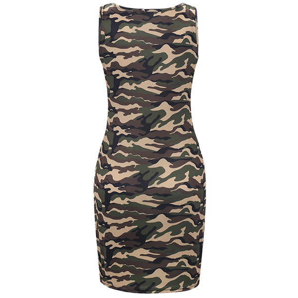 This dress features chic and eye-catching camouflage printed pattern,finished with sleeveless,U-neck
