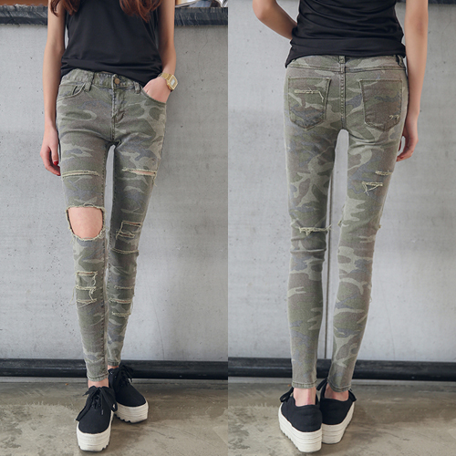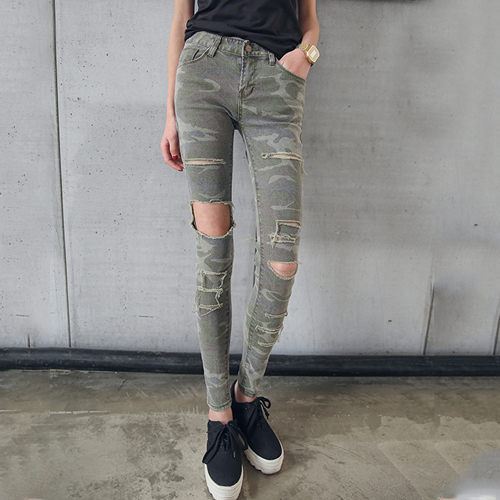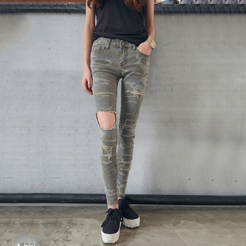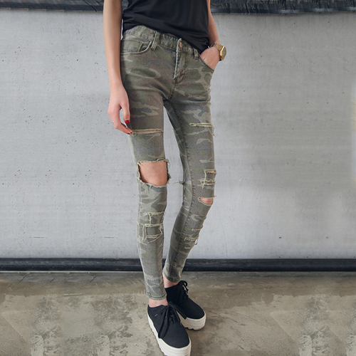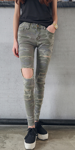 all your matching worries can be solved. Its camouflage printed and ripped design makes this pants look