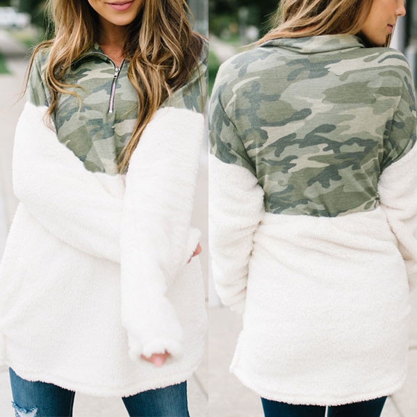 When the chilly autumn and winter hit,you can slip into this plush sweatshirt to keep warm. The camouflage