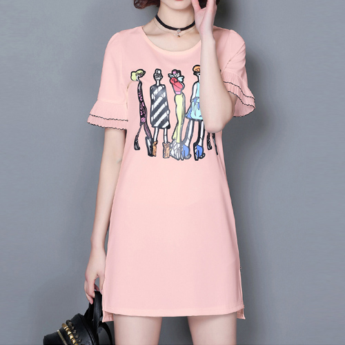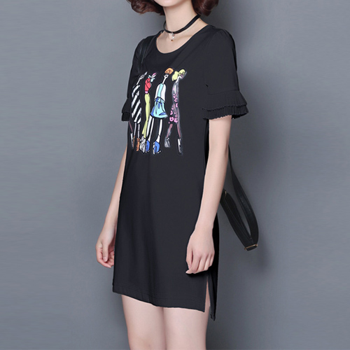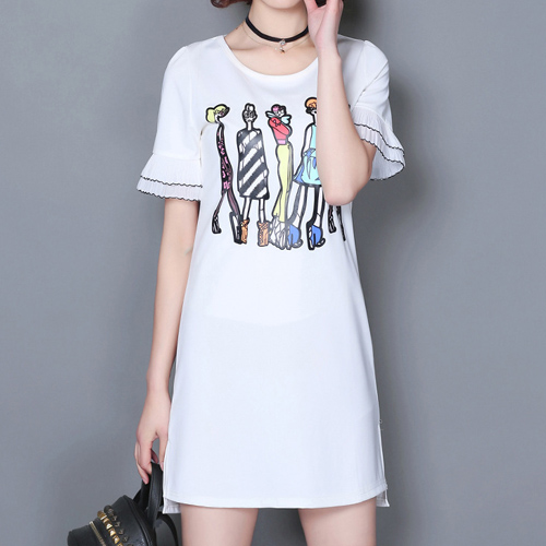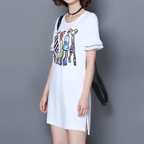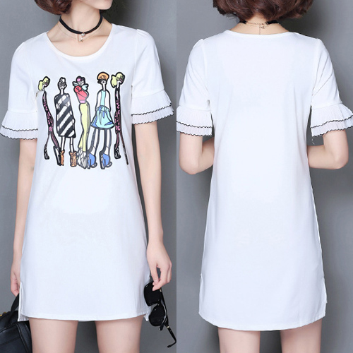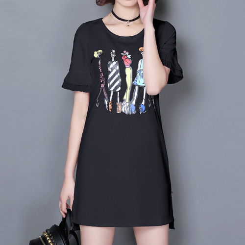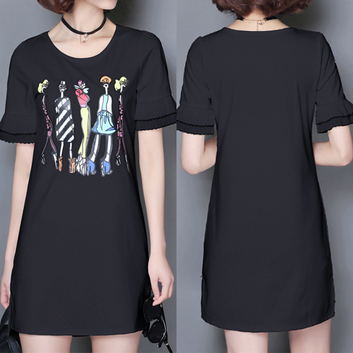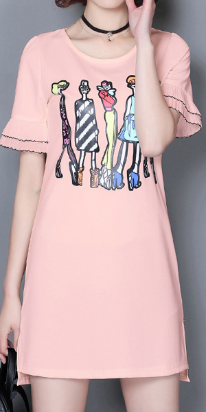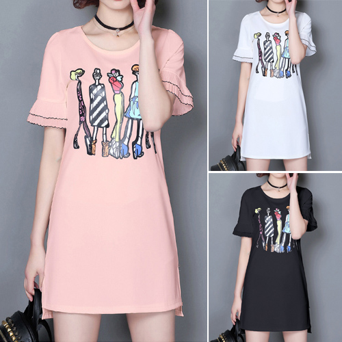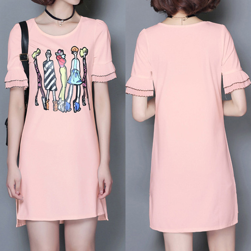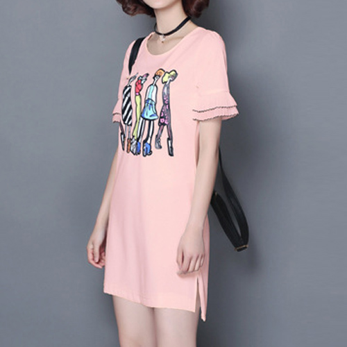 This t-shirt dress is your best choice for your rushed mornings. Features cute cartoon printed pattern,