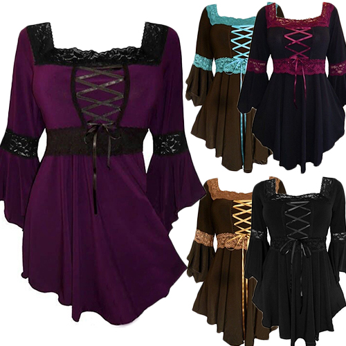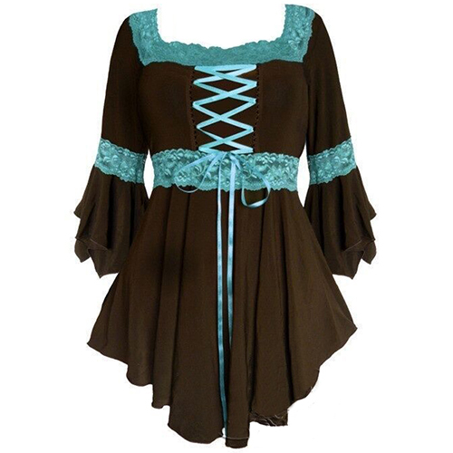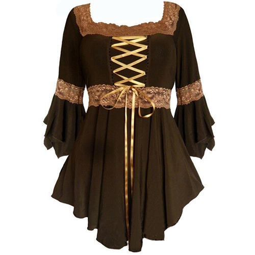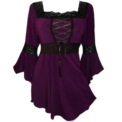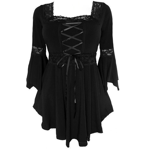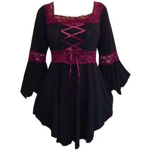 square-cut collar and long sleeve design, unique and stylish. The lace spliced patterns add some stylish