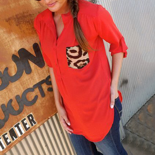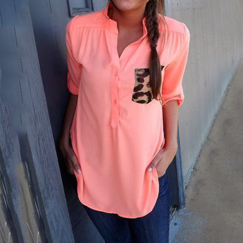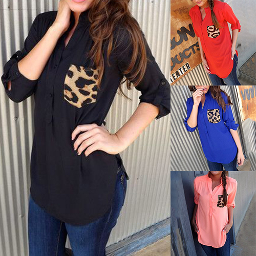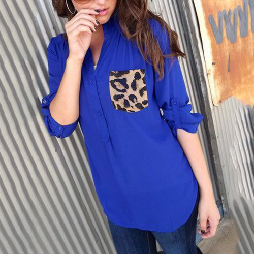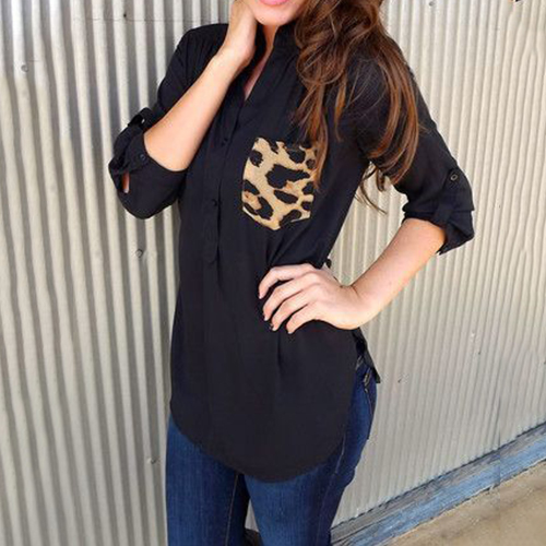 long sleeve front pocket patterns, casual and stylish. The leopard pocket design can add some stylish elements and