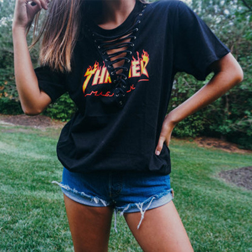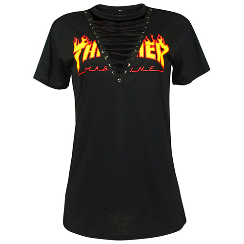letters printed patterns, with hollow out bandage design, chic and unique. You can pair it with different bottoms