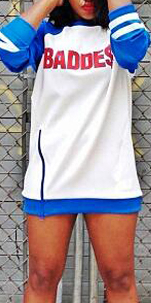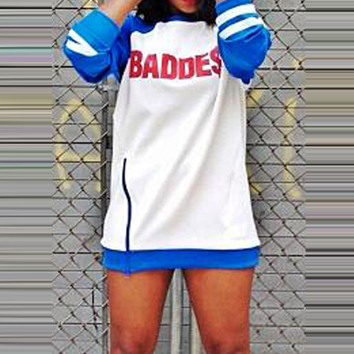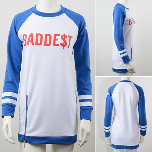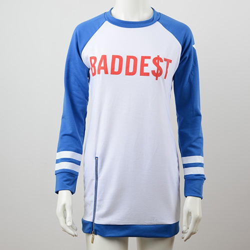 The dress is decorated with letters printed design and long sleeve round neck patterns, simple but stylish.
