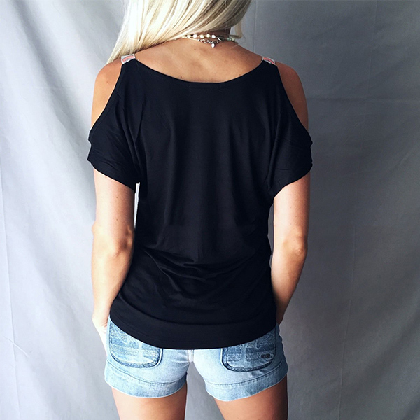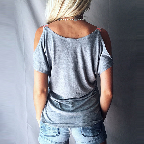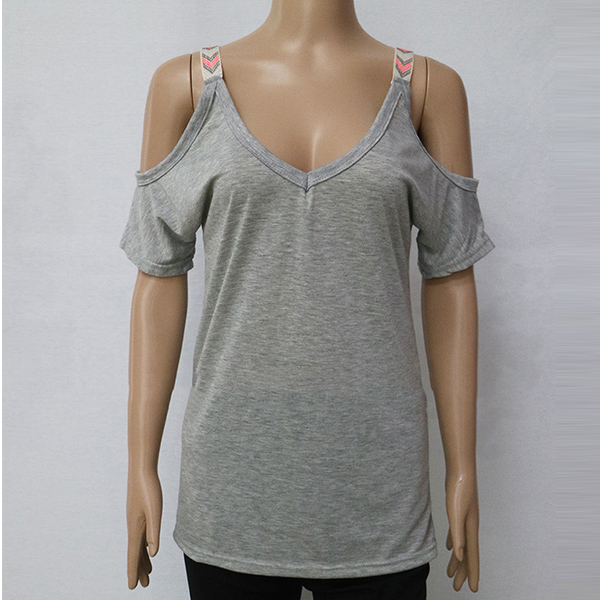 It is a casual T-shirt that features little charming elements. This T-shirt is completed with solid color and V-neck cold