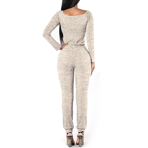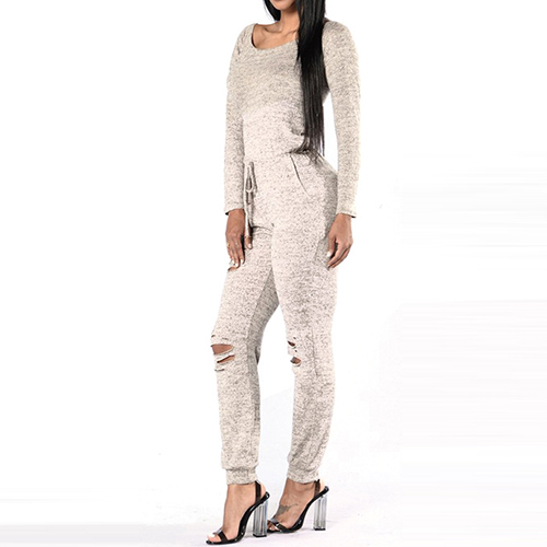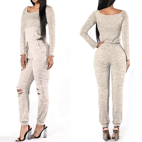 The jumpsuits features solid color and long sleeve and drawstring hollow out patterns, casual