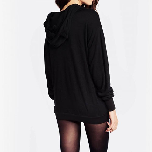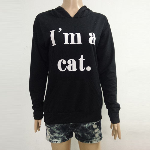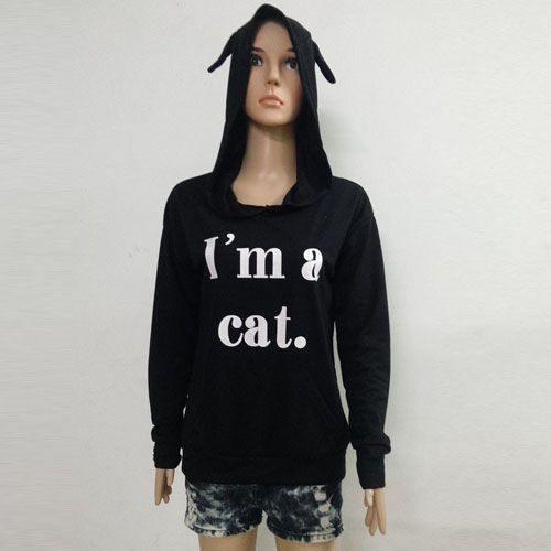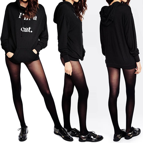 this dolman sweater. Its oversized look, solid color, long sleeves and “I'm a cat ”cross the chest.As the boxy