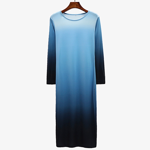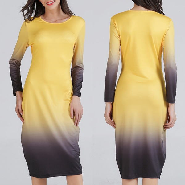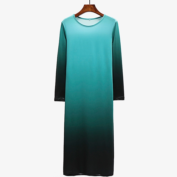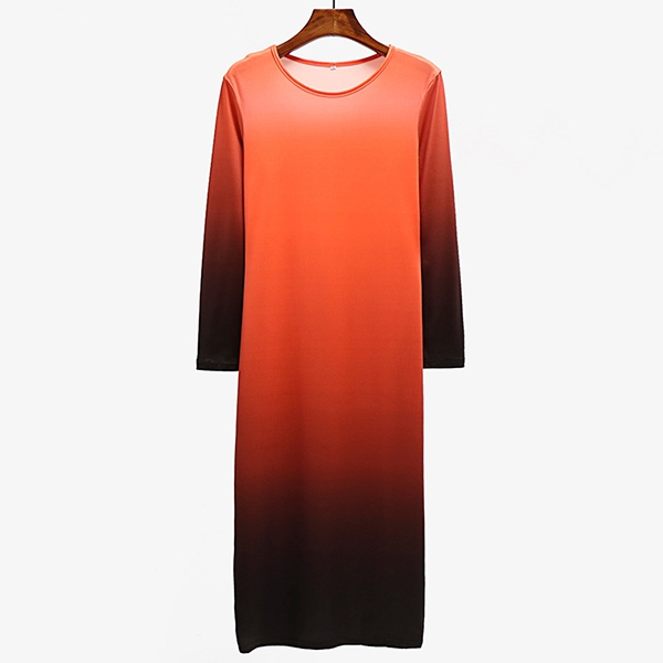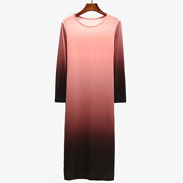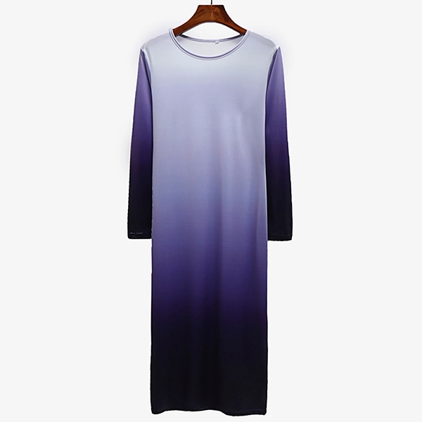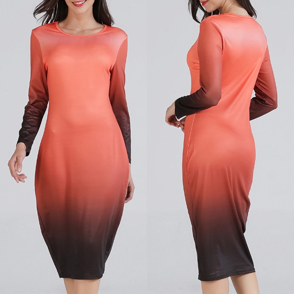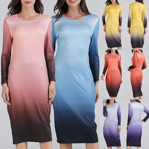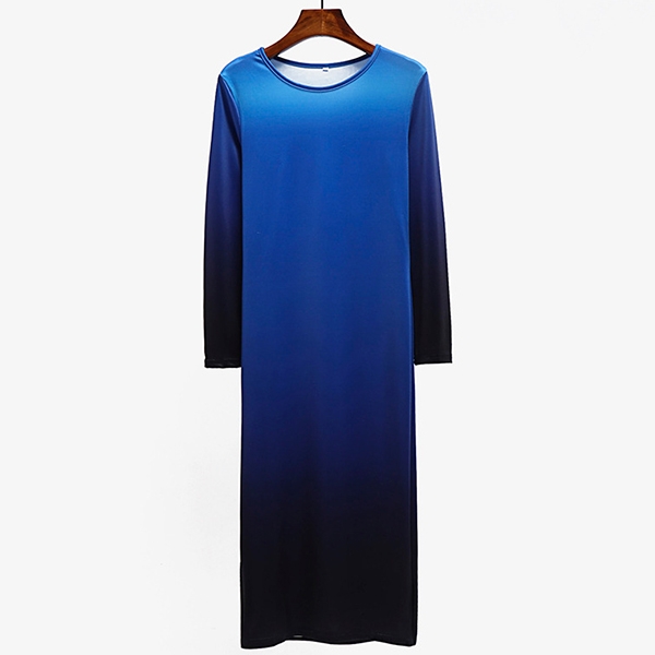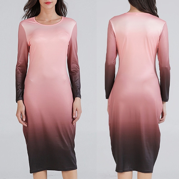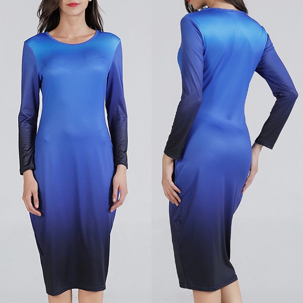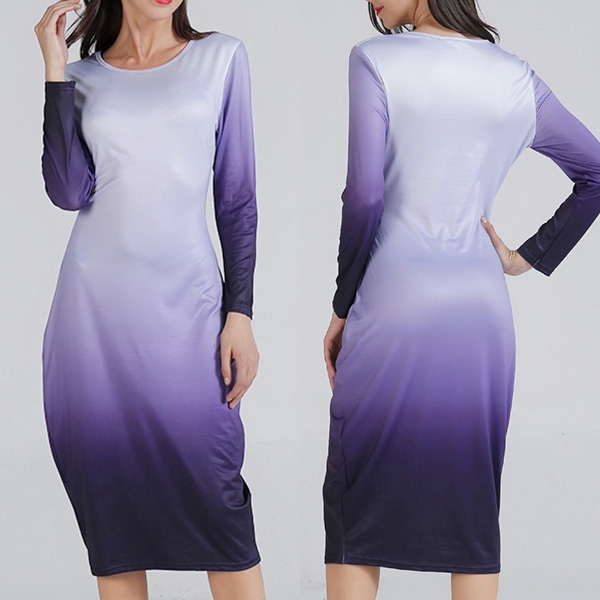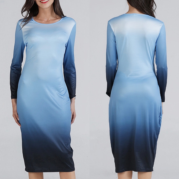 round neck and a fit silhouette,this dress can showcase your perfect curve,while the color gradient