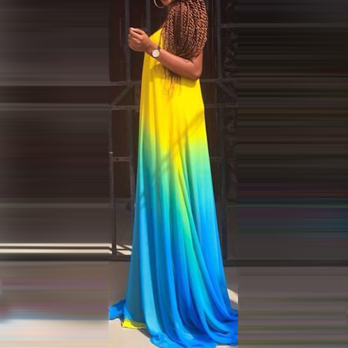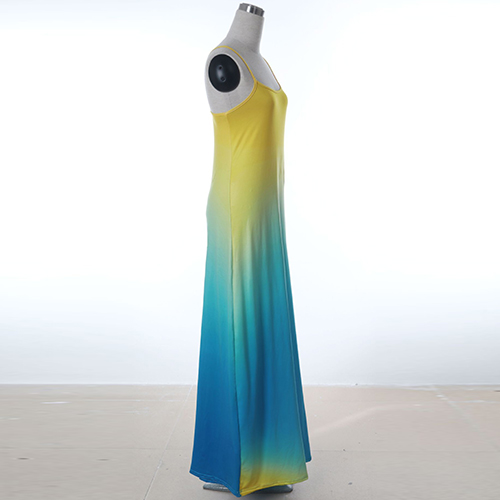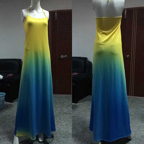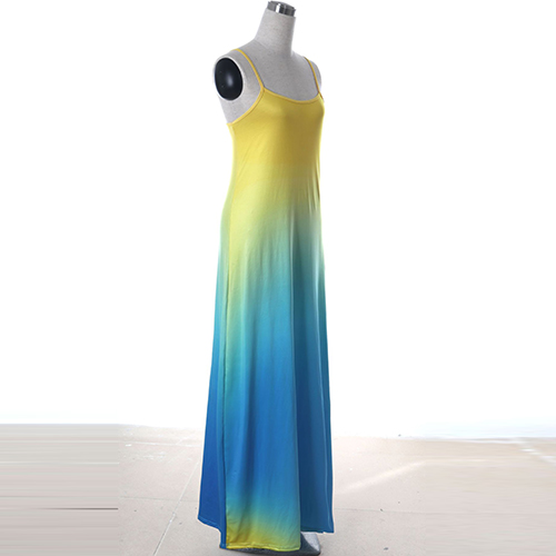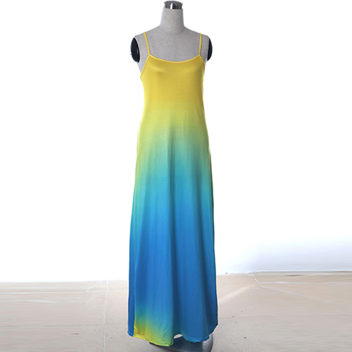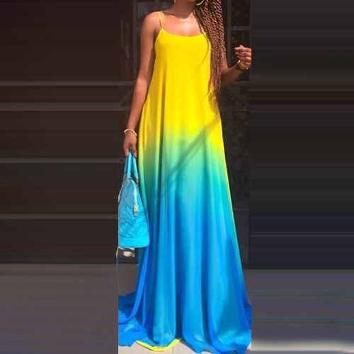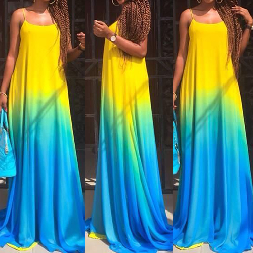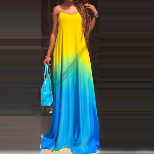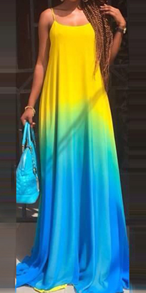 Sling style,with a maxi length,this dress can give you a slender figure. And its color gradient design