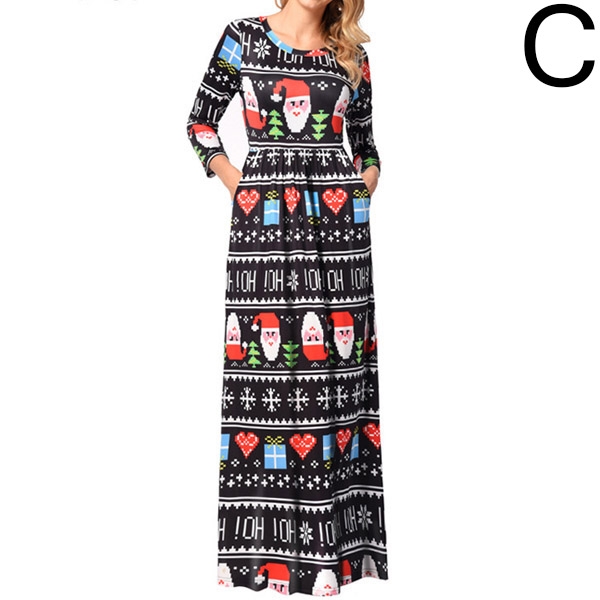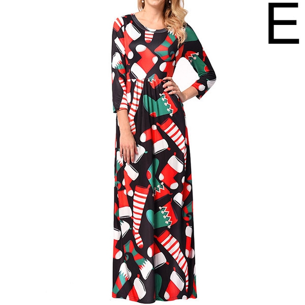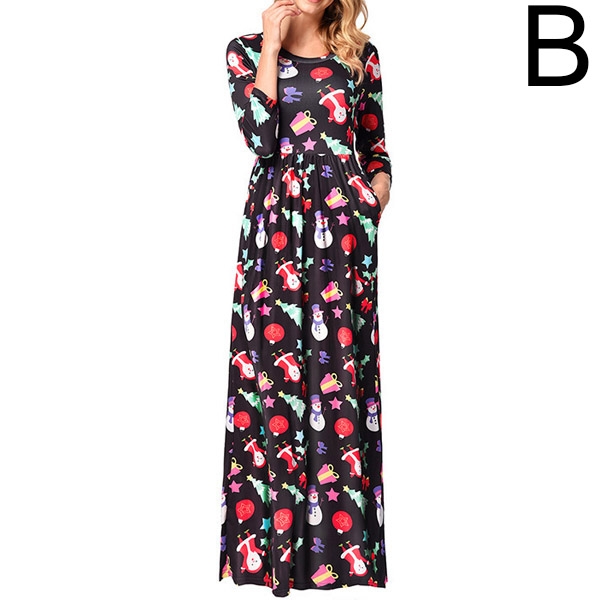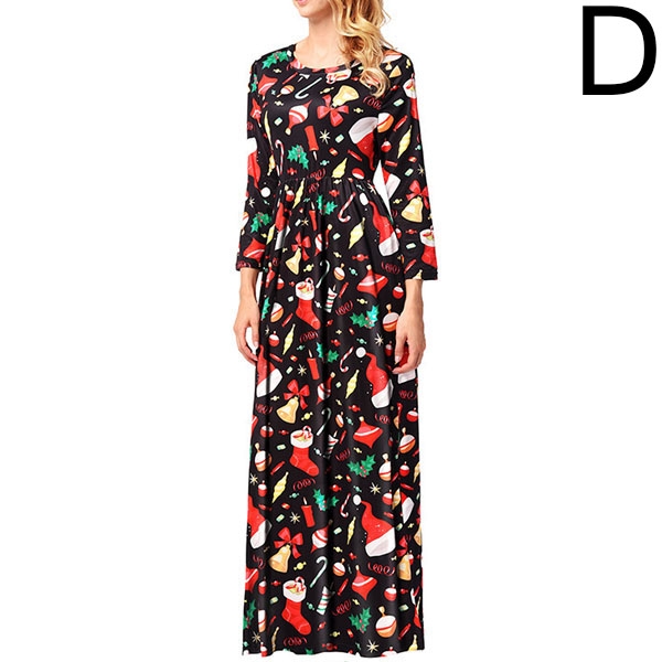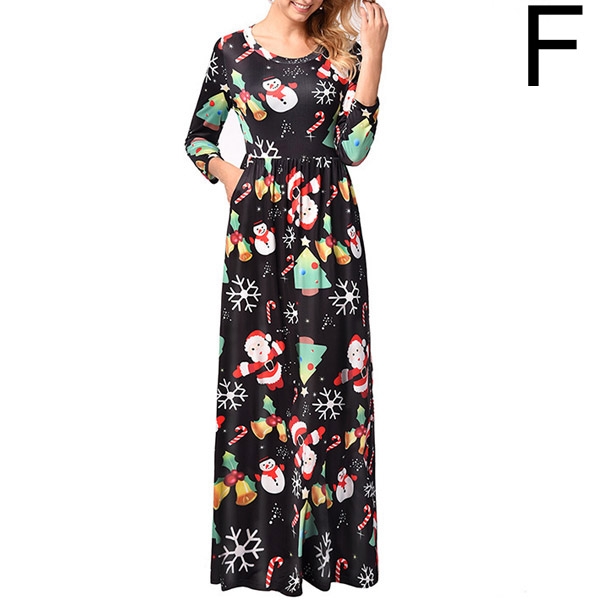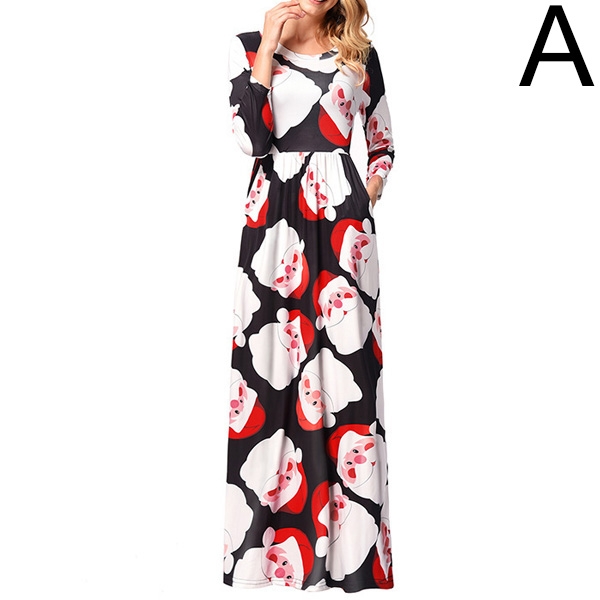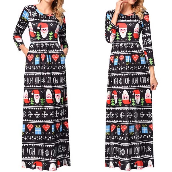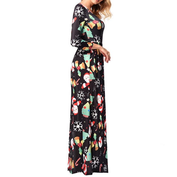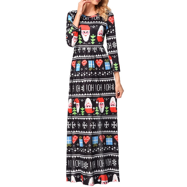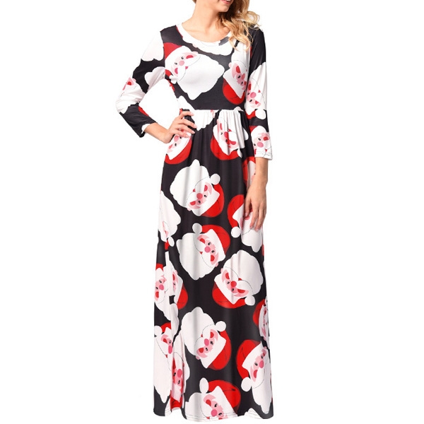 Fashion Colorful Printed Long Sleeve Round Neck Maxi Dress