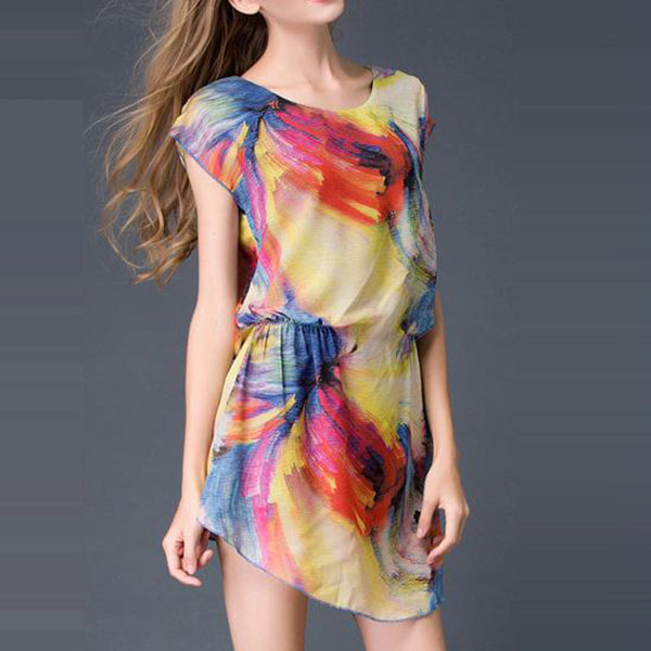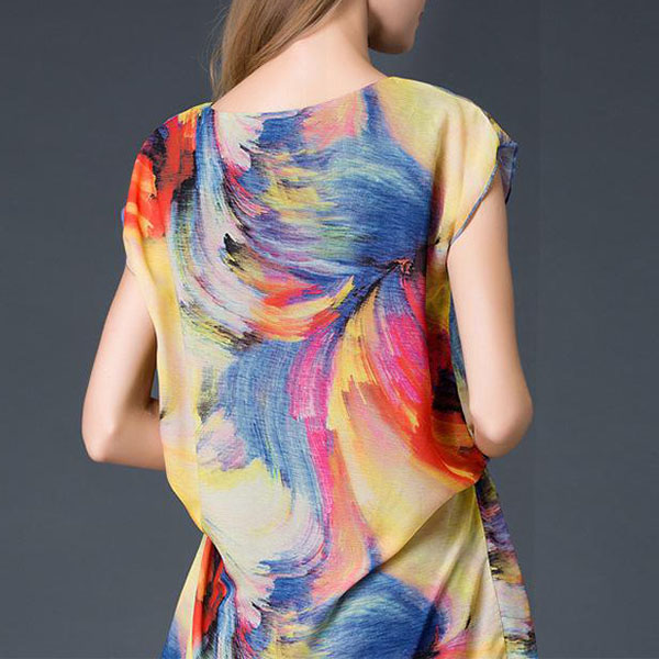 Its colorful printed design makes it look so appealing and eye-catching. Crafted from soft and breezy chiffon fabric,with short sleeve,