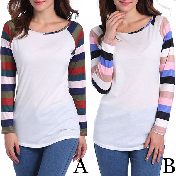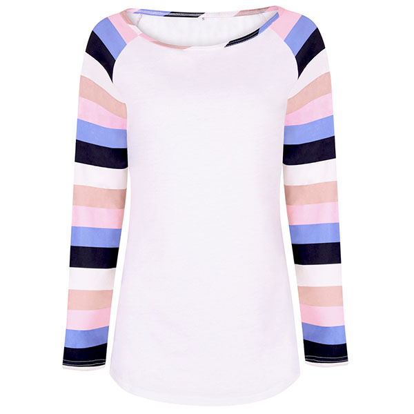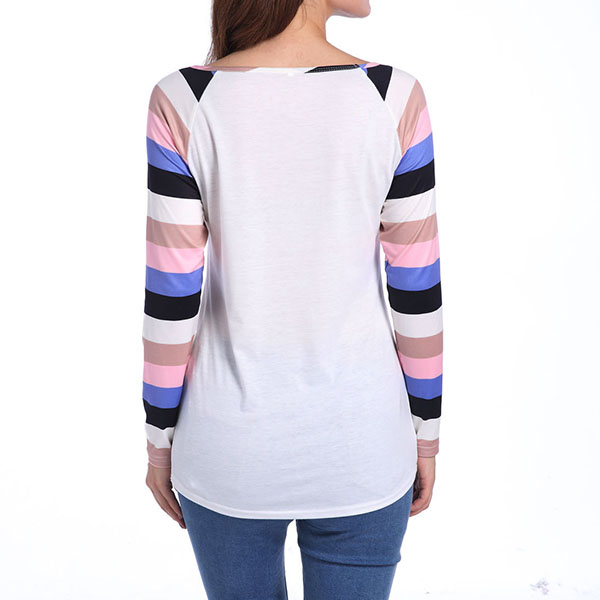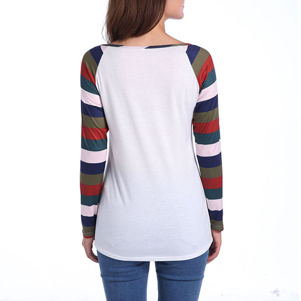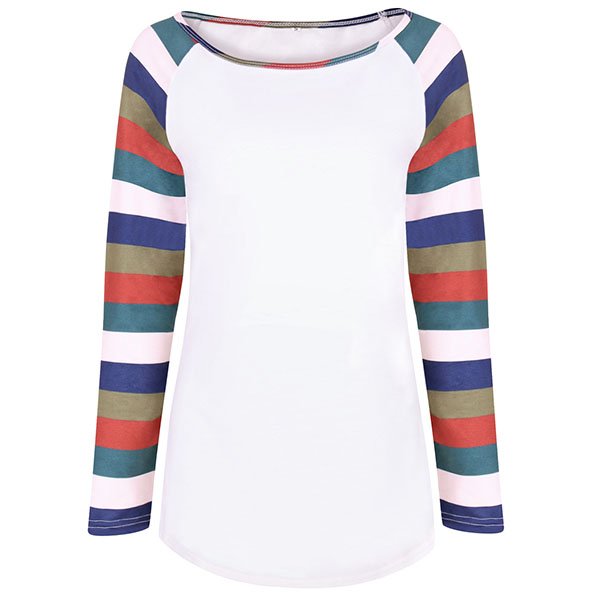 Of course it is because of the colorful striped design. Simple,cozy and stylish,this t-shirt is your wardrobe essential!