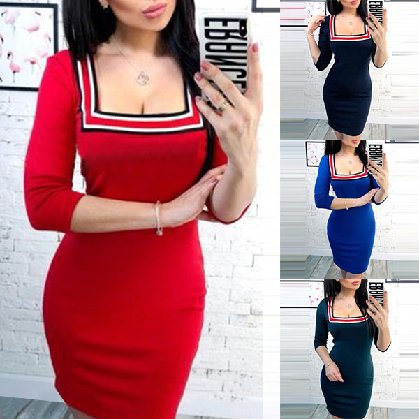Contrast color design makes it look not so monotonous,while the 3/4 sleeve and square collar design can exude