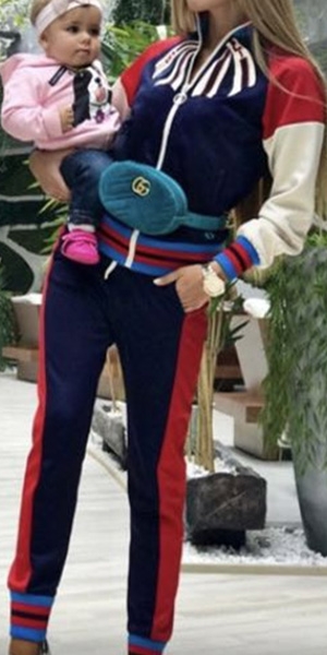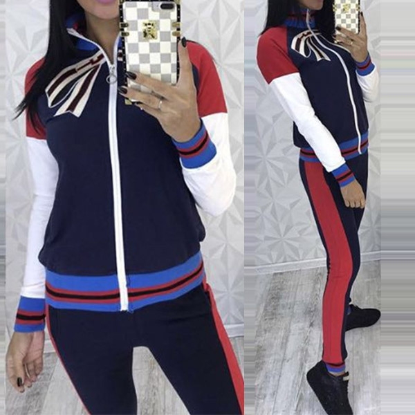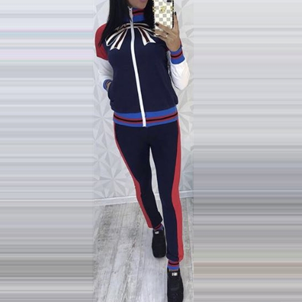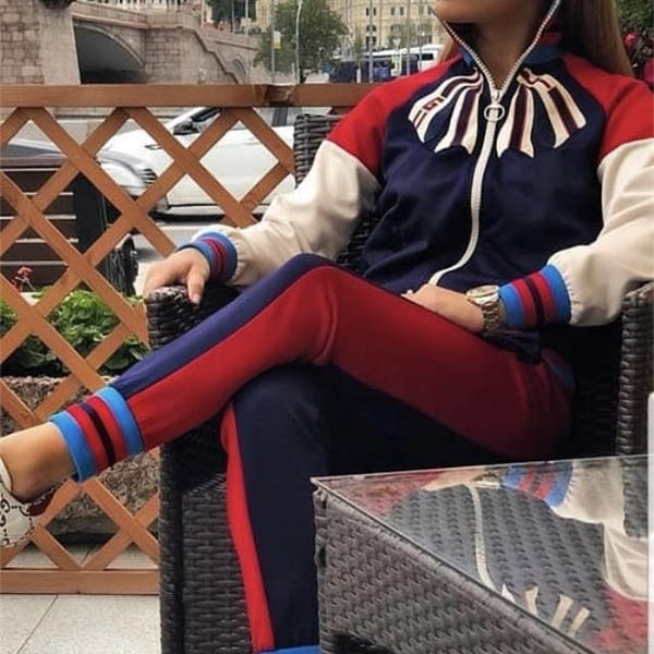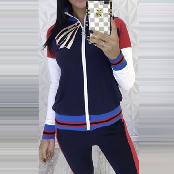 Fashion Contrast Color Bowknot Printed Sweatshirt + Pants Sports Suit