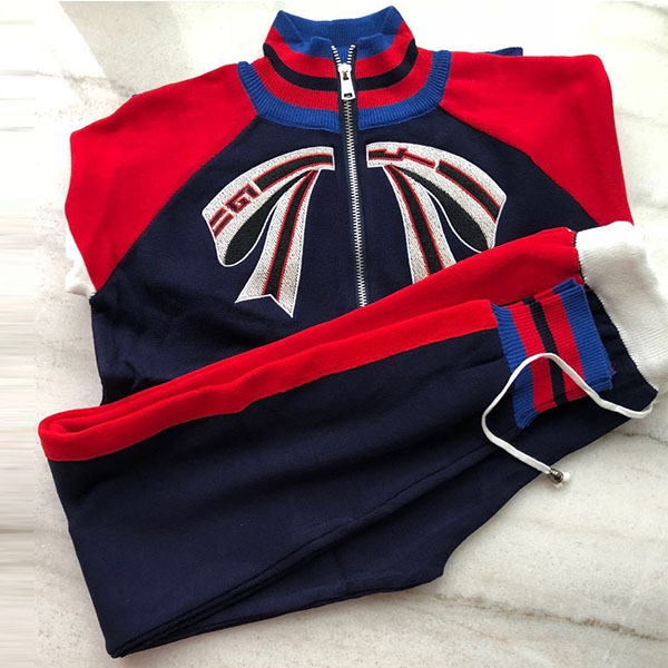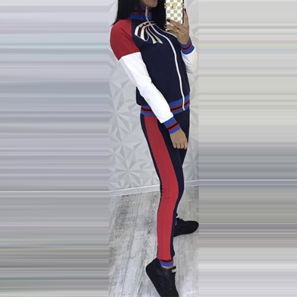 a long sleeve stand collar sweatshirt coat and a pants,the contrast