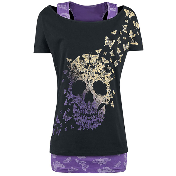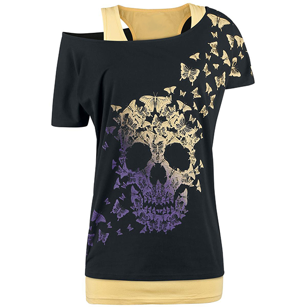 contrast color,butterfly and skull printed pattern make this piece look so appealing. Of course this t-shirt can give you