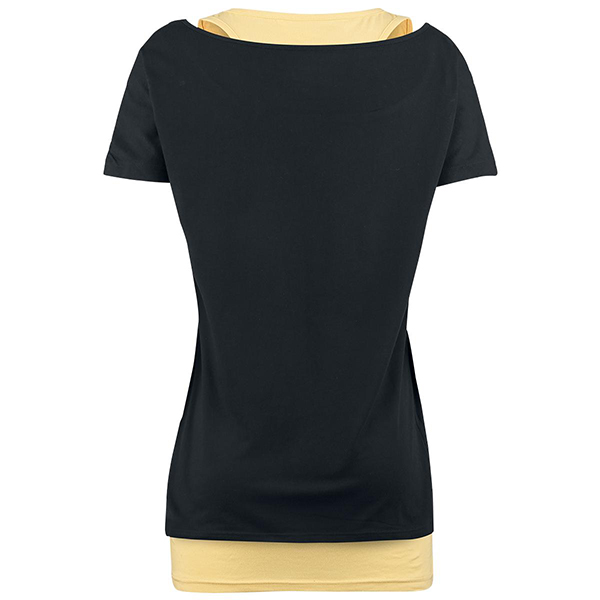 Add a different style t-shirt such as this creation to your wardrobe ensemble. Mock two-piece style,its chic details like