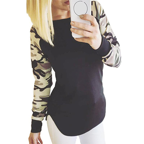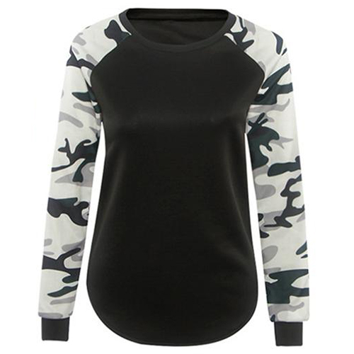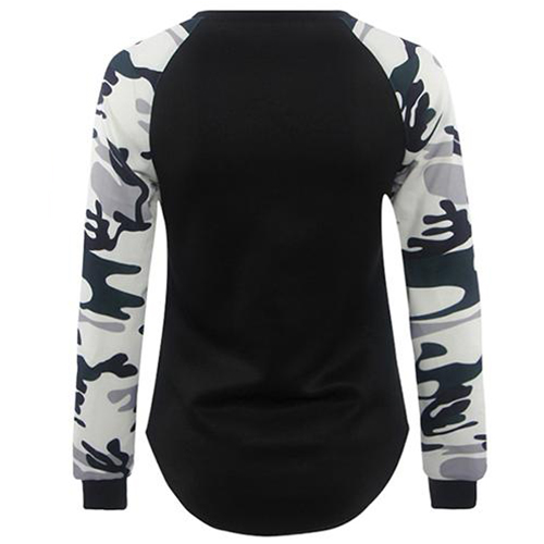 design details. Contrast color style, designed with round neck and long sleeve, the camouflage