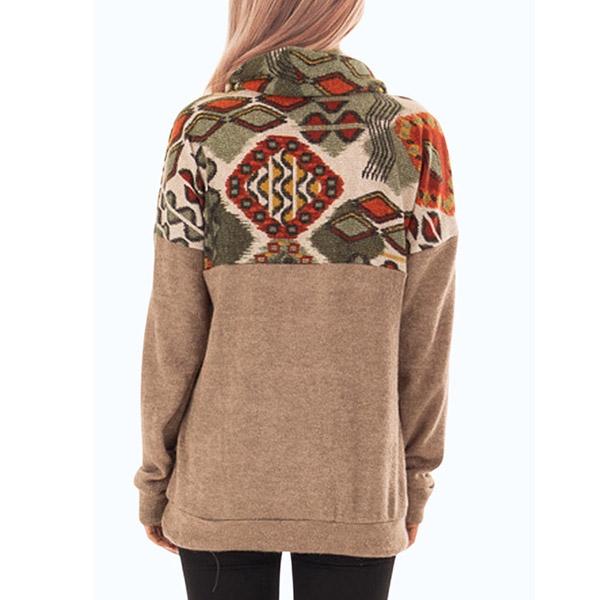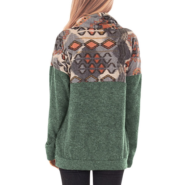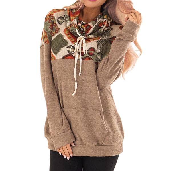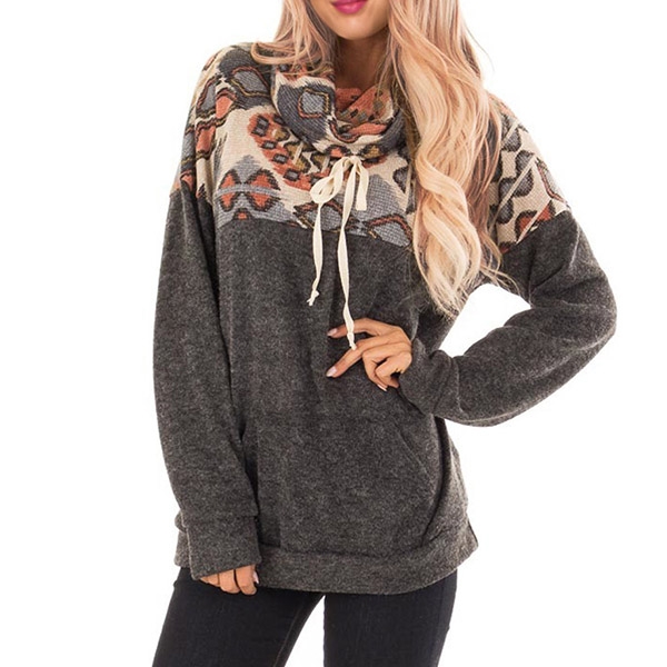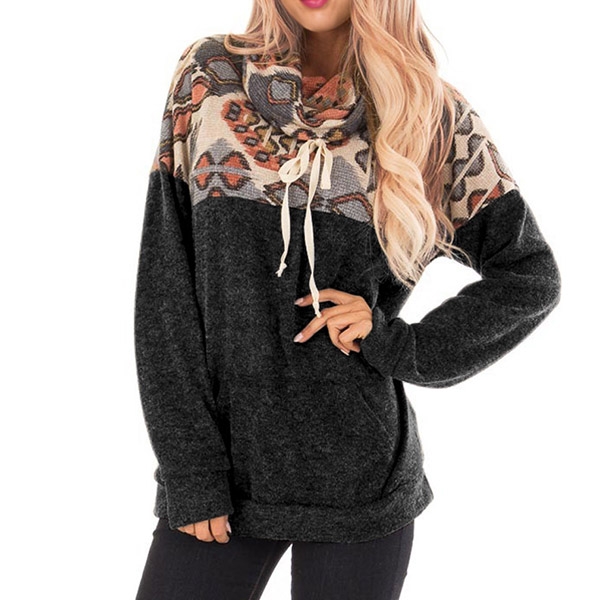 style,with long sleeve,cowl neck and decorated with embroidered pattern,this shirt is a perfect combination