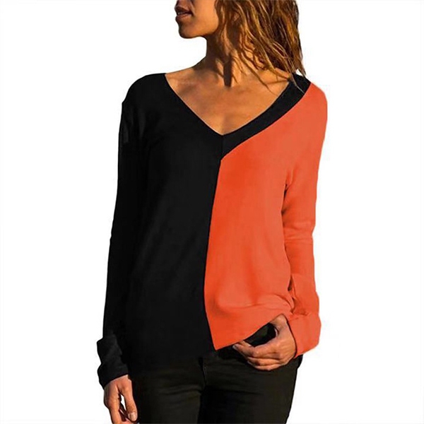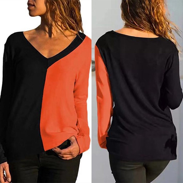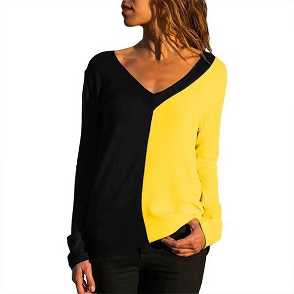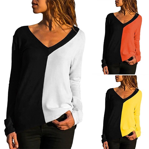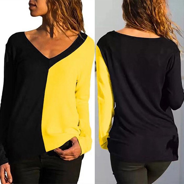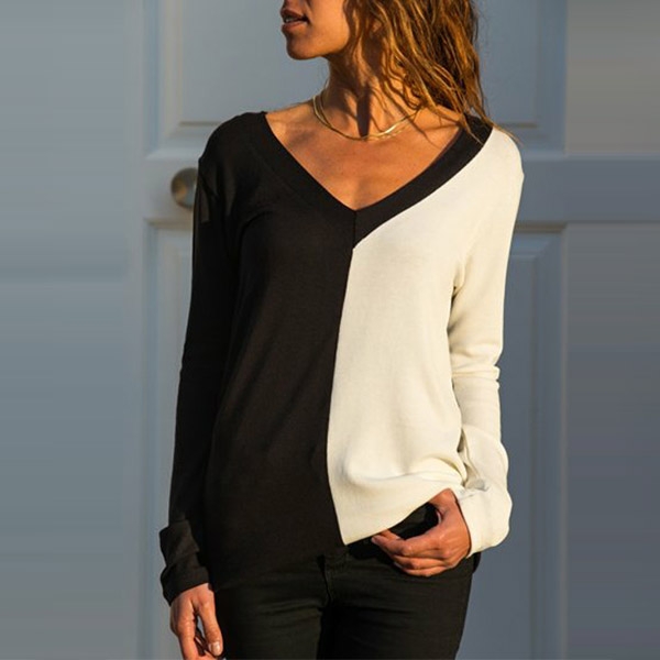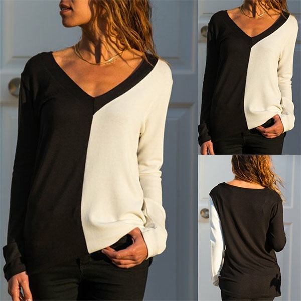 This shirt is designed with a deep v-neck and long sleeves while it is also styled with a fabric spliced