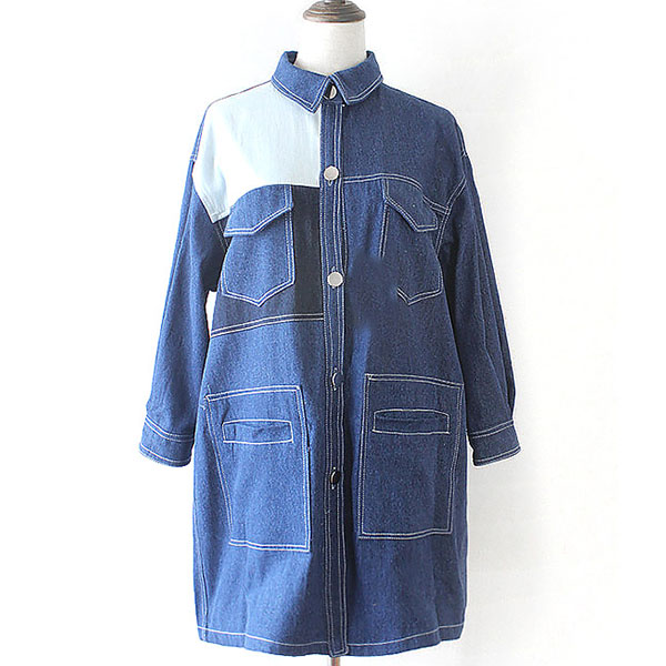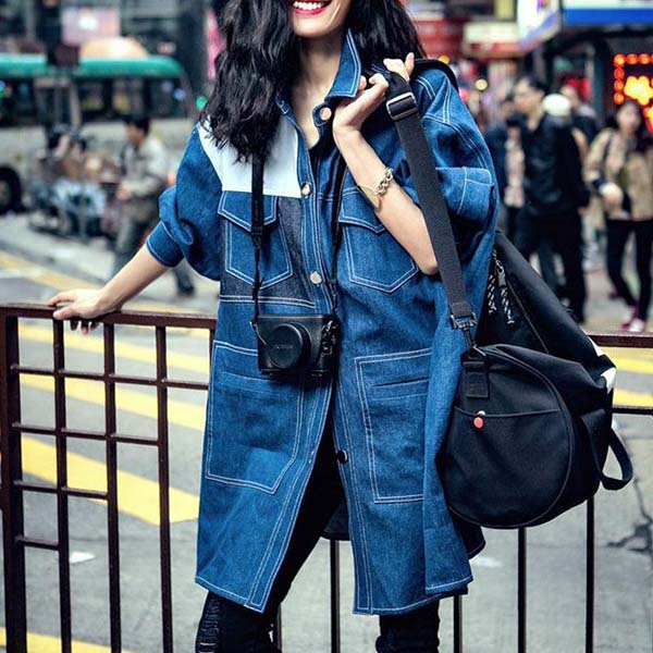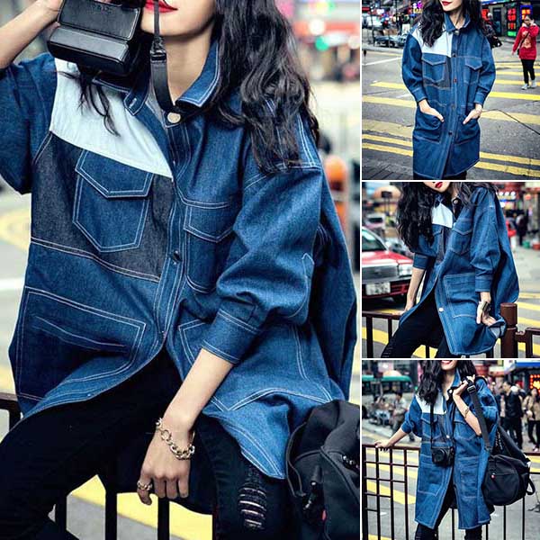 Portray your chic and unique style with this denim coat. The contrast color and dolman sleeve design