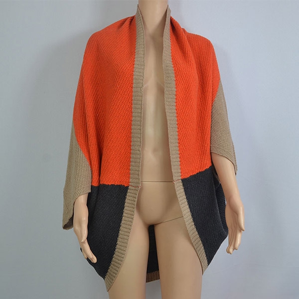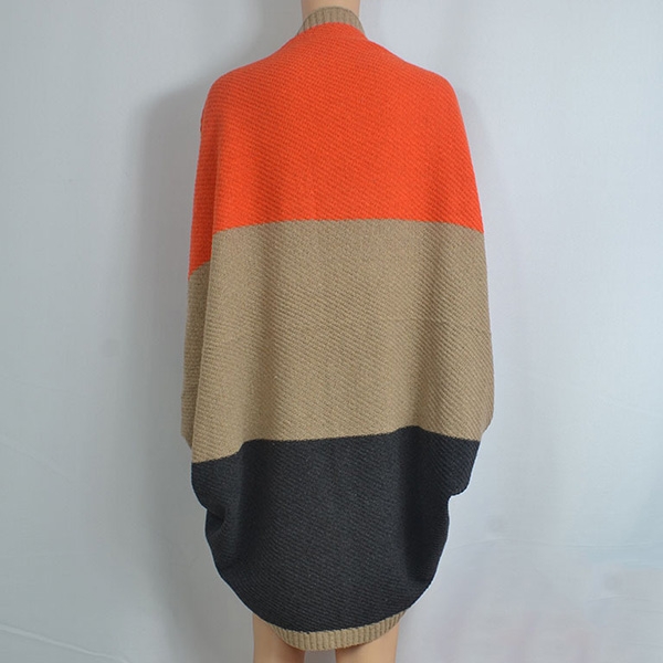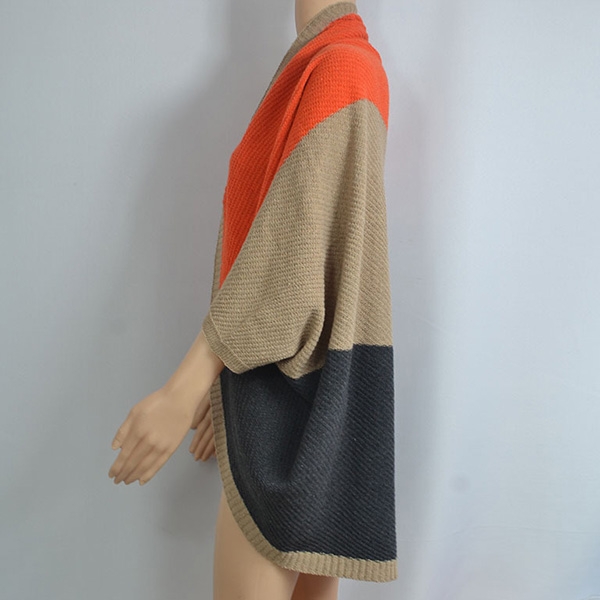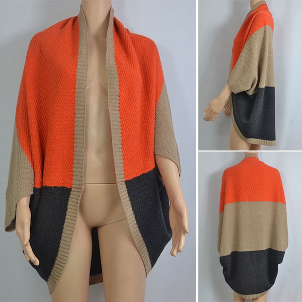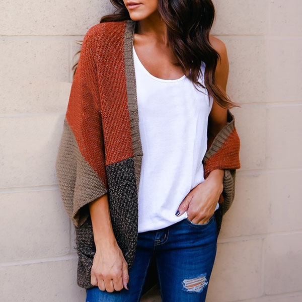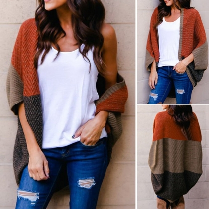 Fashion Contrast Color Dolman Sleeve Loose Knit Cardigan