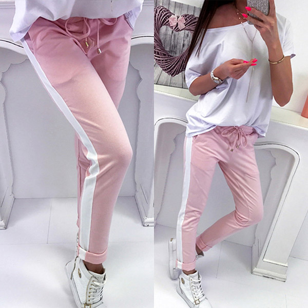 This pants comes with a contrast color design,which breaks the simple and single design style.