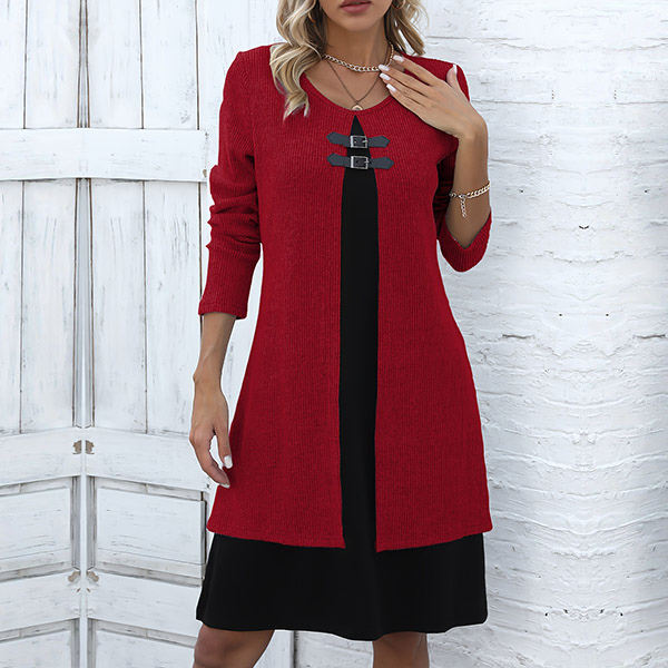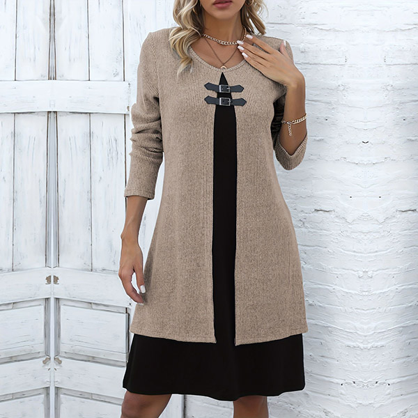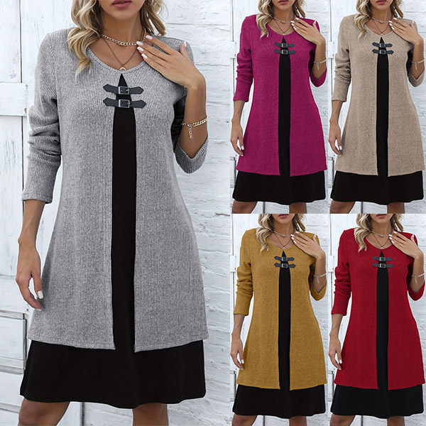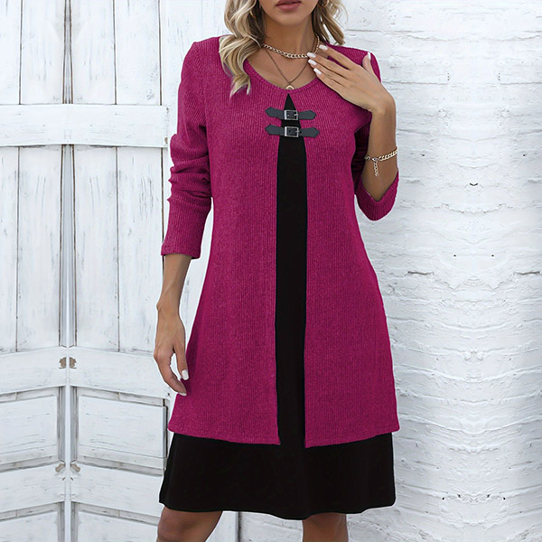 Fashion Contrast Color Half Sleeve Round Neck Dress
