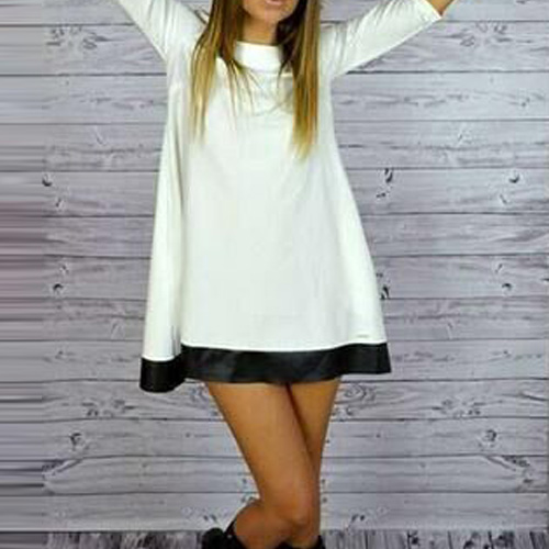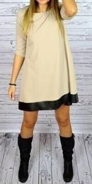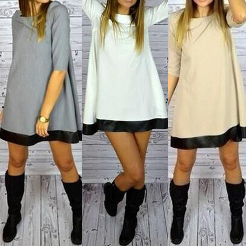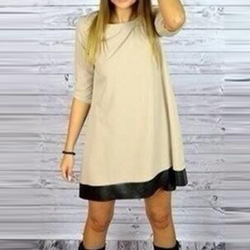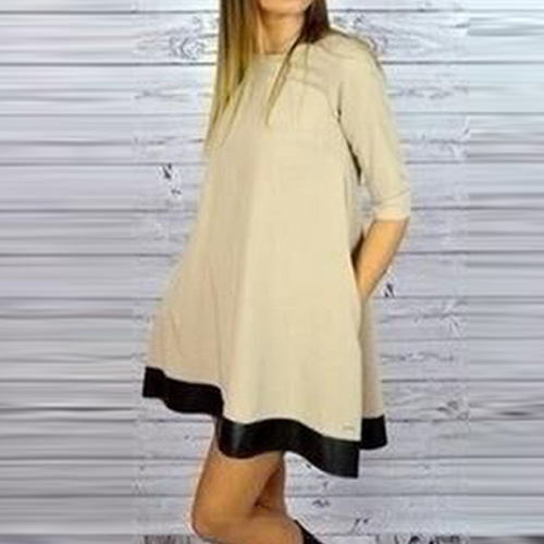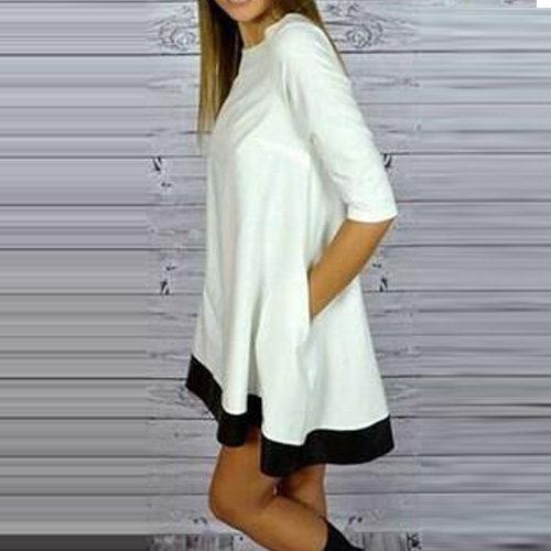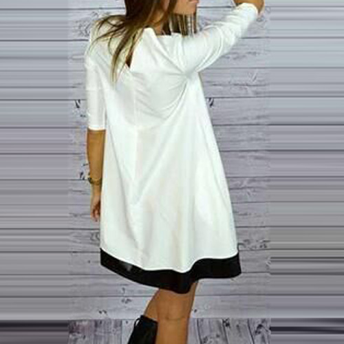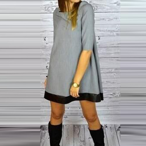 Fashion Contrast Color Half Sleeve Round Neck Loose Dress