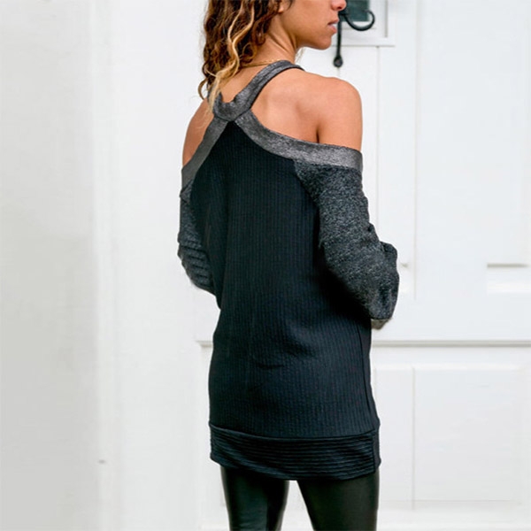 Contrast color style, with halter, long sleeve and off-shoulder design , simple but fashionable,