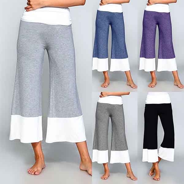 Fashion Contrast Color High Waist Casual Wide Leg Pants