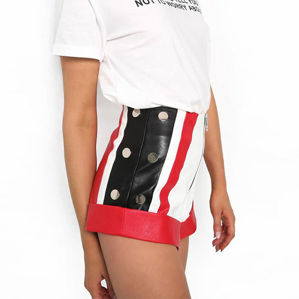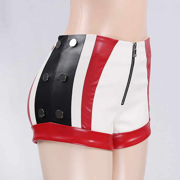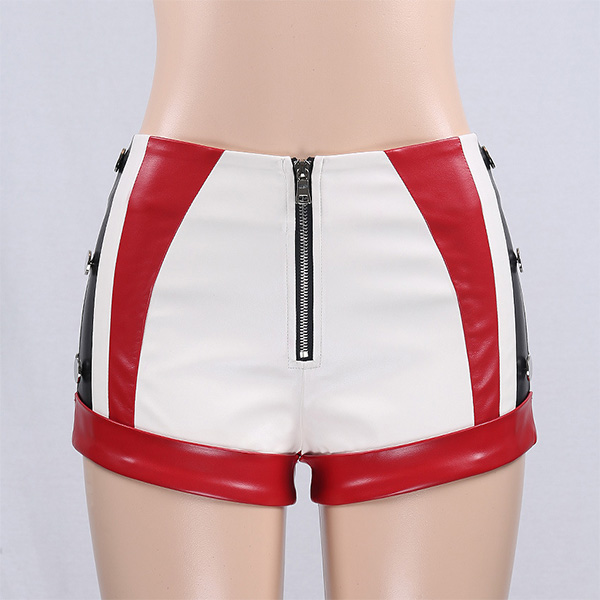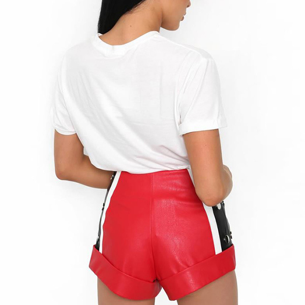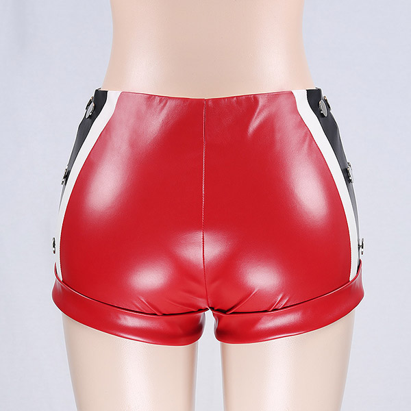 This shorts features contrast color style,with PU leather spliced design,which not only enrich the design style,