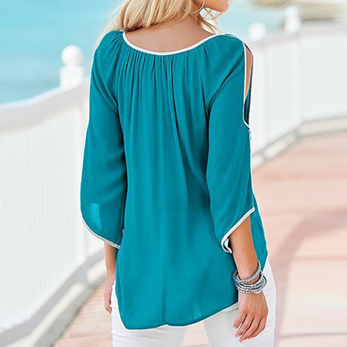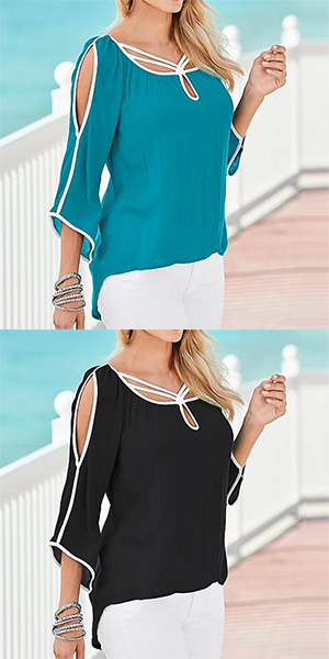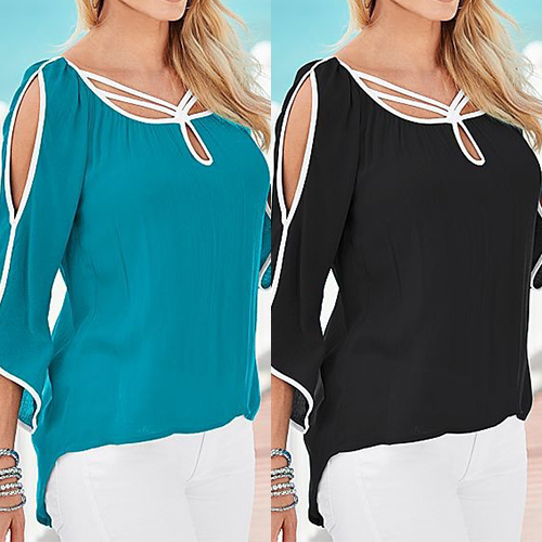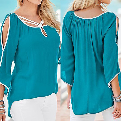 Just do yourself with this flowy chiffon tops. Styled with hollow out, it boasts cold shoulder and