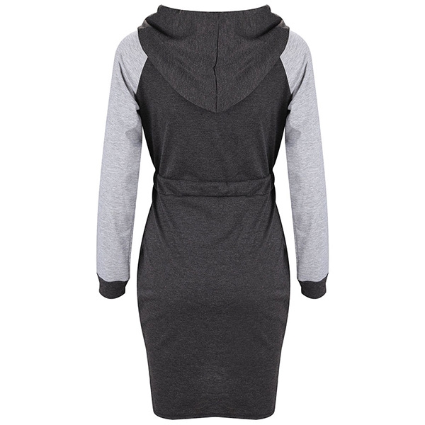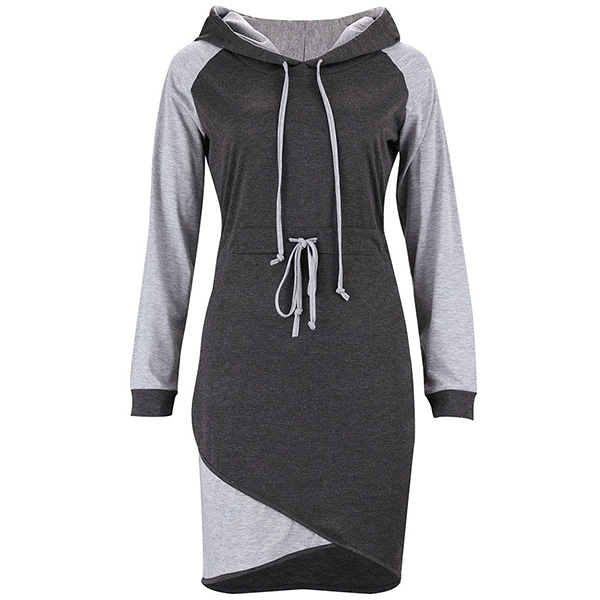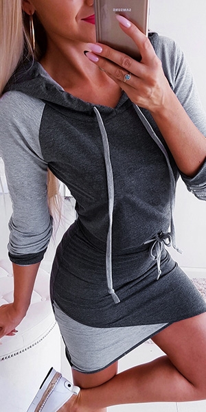 You can stay cozy and stylish in this sweatshirt dress.It comes with contrast color,irregular hem