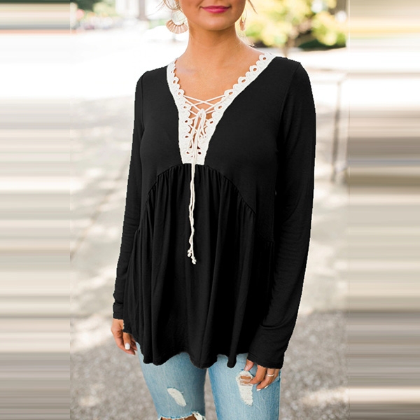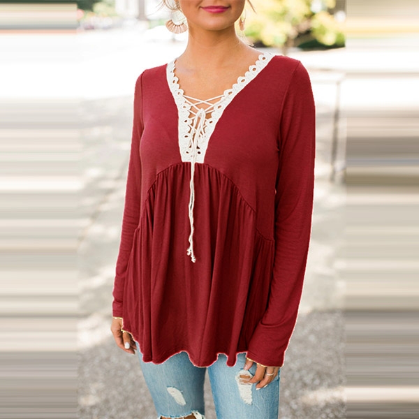 Lace spliced style,with contrast color,long sleeve and pleated hem,stylish and charming. Thanks to its